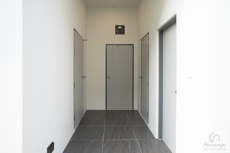 บริเวณโถงทางเข้าห้อง จะเป็นจุดที่เราทำ Built-in เป็นตู้เสื้อผ้าและโต๊ะเครื่องแป้งได้ โดยส่วนนี้จะเชื่อมต่อกับห้องน้ำในตัว