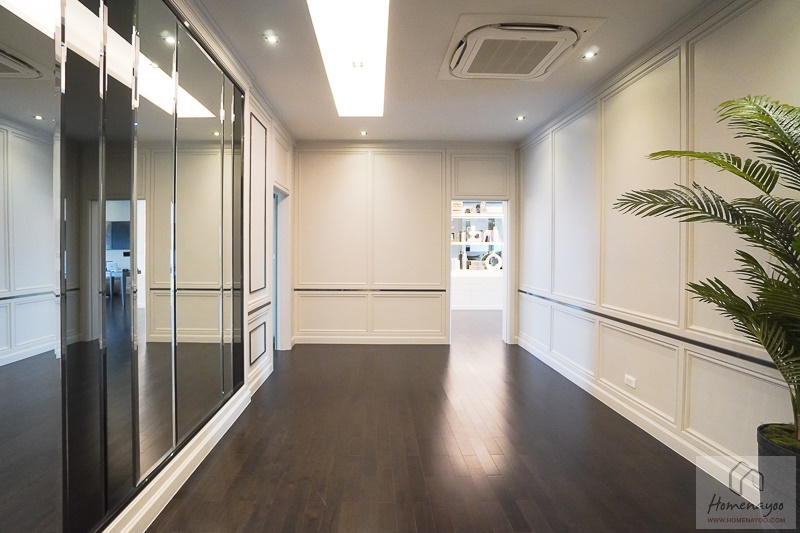 พื้นที่อีกฝั่งจะเป็น Walk-in Closet ขนาดใหญ่เชื่อมต่อกับห้องน้ำในตัว สามารถทำตู้เสื้อผ้า Built-in และโต๊ะเครื่องแป้งได้โดยรอบ