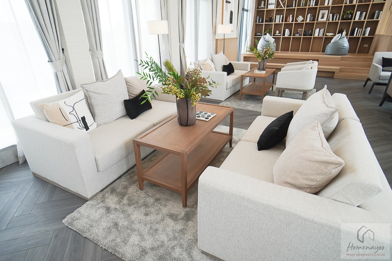 ความพิเศษของห้องนี้ก็คือ จะมี Living Area ส่วนตัวอยู่ภายในห้องด้วยค่ะ ด้วยขนาดของพื้นที่ก็เรียกได้ว่าใหญ่พอ ๆ กับห้องนั่งเล่นและห้องรับประทานอาหารของบ้านเดี่ยวขนาดเริ่มต้นแล้ว