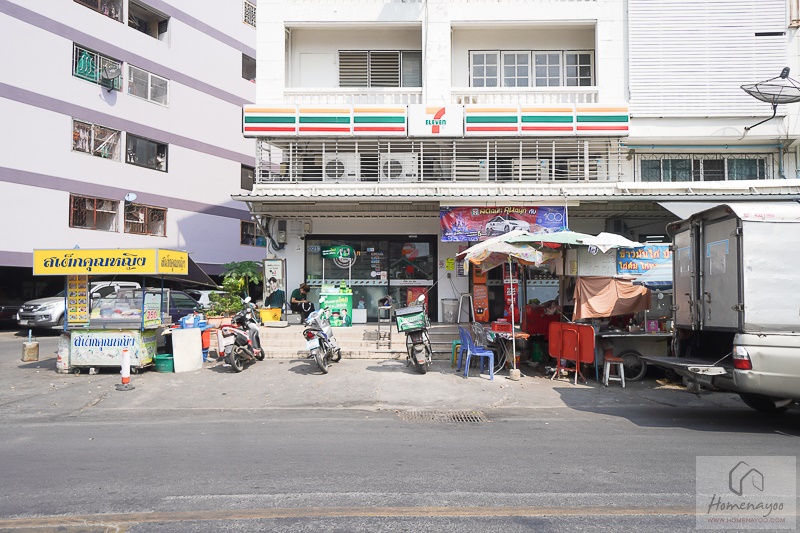 เลยจากโครงการไปจะเห็นร้านค้าและร้านอาหารอยู่ตลอดทาง โดยประมาณ 270 ม.* จะมี 7-11 อยู่ 1 สาขาค่ะ