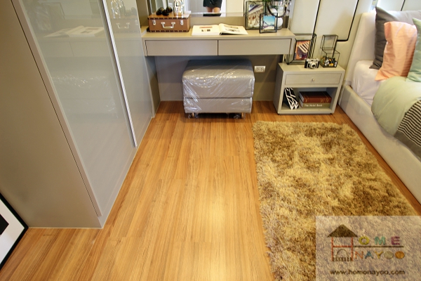 ข้างเตียงสามารถวางตู้เสื้อผ้าและโต๊ะเครื่องแป้งแบบห้องตัวอย่างได้ โดยยังเหลือระยะใช้งานประมาณ 80 ซม.