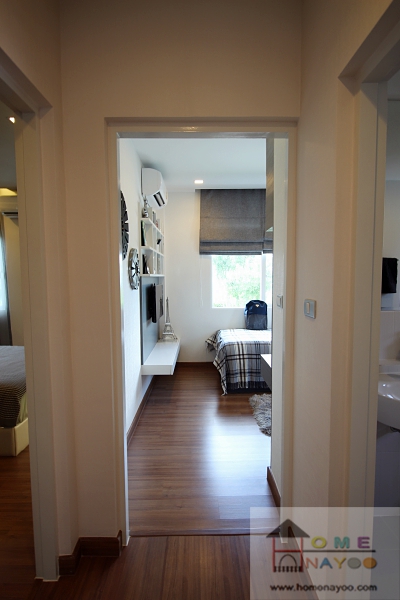 ด้านขวาเป็นทางเดินไป Master Bedroom หรือห้องนอนใหญ่ พื้นชั้น 2 จะเป็นพื้นไม้ลามิเนตหนา 8 มม.ทั้งชั้น