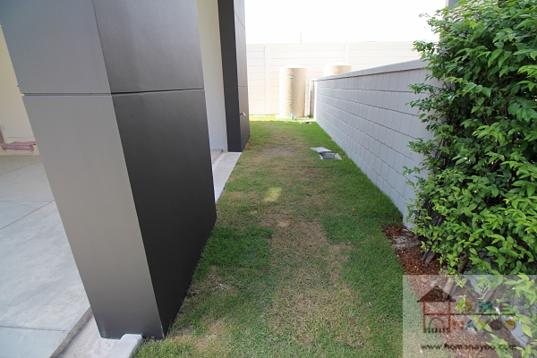 อันนี้ภาพพื้นที่ข้างบ้านจากบ้านเปล่าค่ะ รั้วรอบบ้านสูง 1.5 เมตร และพื้นปูสนามหญ้าและปลูกไม้พุ่มริมรั้วมาให้ได้ตามนี้ค่ะ