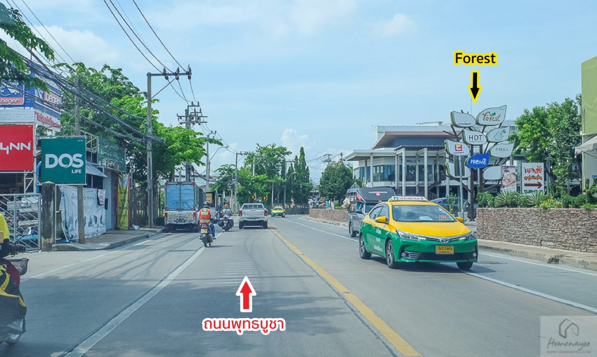 เริ่มจากด้านหน้าโครงการติดกับถนนซอยพุทธบูชา 36 ซ้ายมือมีป้ายโครงการติดไว้ชัดเจน