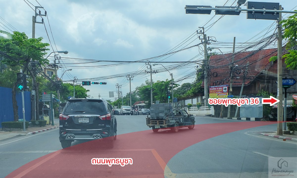 เลยมาอีกหน่อยจะเจอแยก ขวามือจะเป็นซอยพุทธบูชา 36 ให้เลี้ยวขวาเข้าซอยนี้ครับ