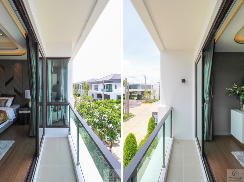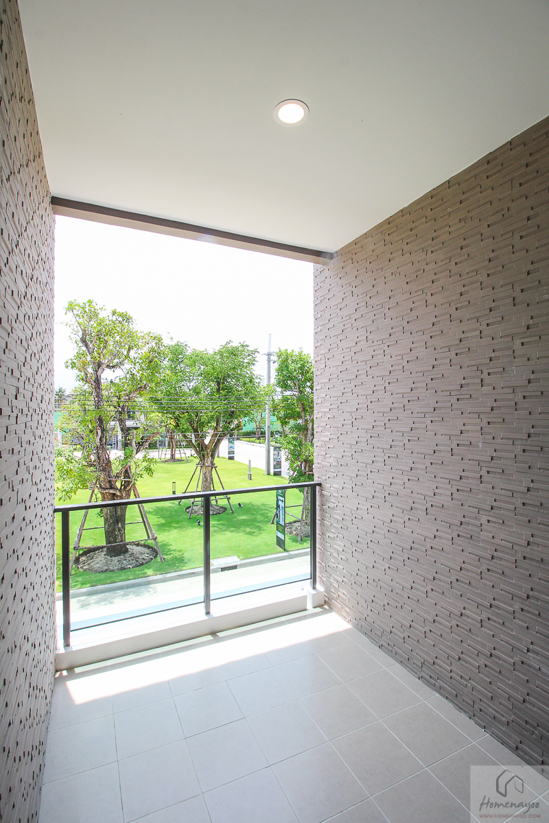 ฝั่งด้านนอกเป็นระเบียงมีประตูกระจกบานเลื่อนเปิดเชื่อมออกไปได้