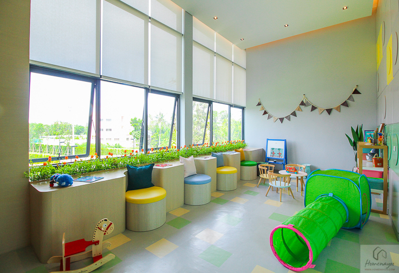 สาธารณูปโภค – ส่วนกลางที่นี่จะมี Club House 2 ชั้น ชั้นล่างมีห้องรับรอง มีสระว่ายน้ำขนาดออกกำลังได้ แบ่งสระเด็ก และมีส่วนจากุซซี่ มีพื้นที่นั่งพักผ่อนริมสระ มีห้องน้ำแยกชายหญิงพร้อมห้องซาวน่า ที่ชั้น 2 จะเป็นห้องฟิตเนส วางเครื่องออกกำลังกายมาหลากหลาย มี Kid’s room มี Co-Living space ไว้สำหรับนั่งทำงาน อ่านหนังสือได้ และมีโต๊ะพลูมาให้ด้วย ด้านในมี Theater Room ไว้ดูหนังส่วนตัวได้ รอบๆ Club House จะเป็นสวนตกแต่งมาได้ร่มรื่น