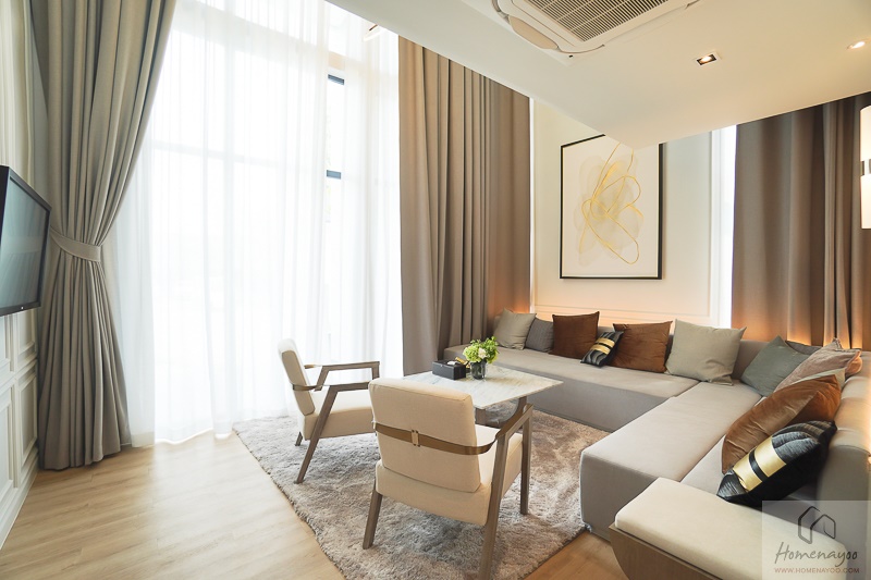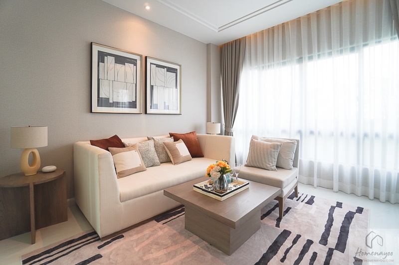 เข้ามาภายในห้องส่วนแรกจะเป็นโถงกลางห้อง เราสามารถจัดเป็นมุม Living Area ส่วนตัวภายได้เลยนะ วางชุดโซฟาและโต๊ะกลางขนาดใหญ่ได้เลย