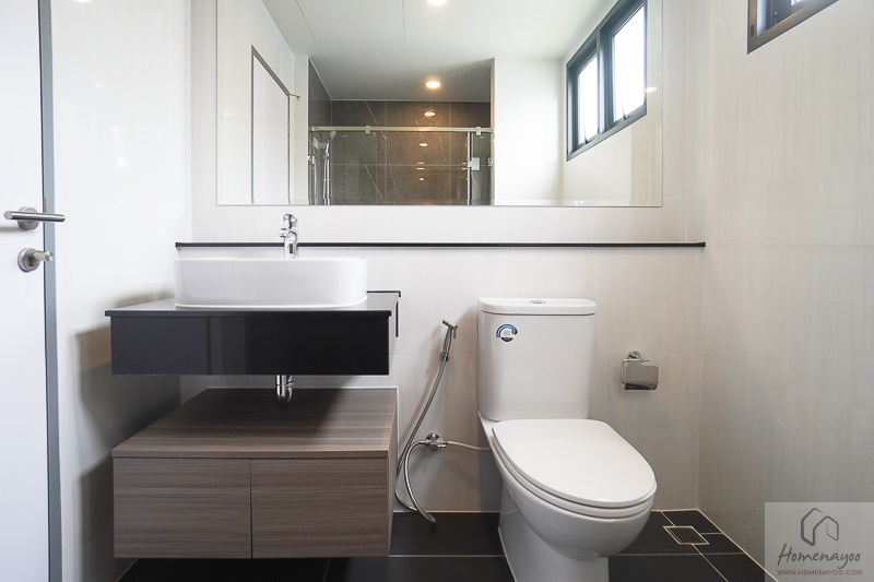 ห้องน้ำจะเป็นห้องน้ำแบบ Full Function แบ่งเป็นโซนอ่างล้างมือ