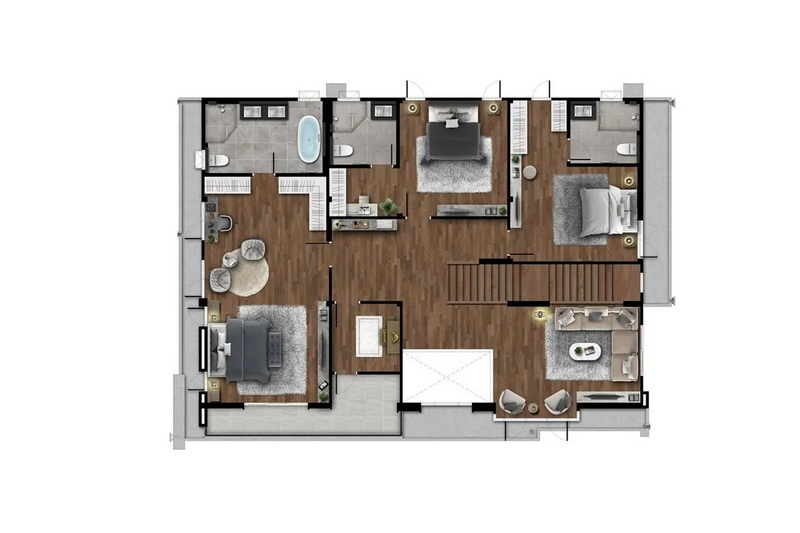 • ฟังก์ชัน 4 ห้องนอน, 5 ห้องน้ำ, 3 ที่จอดรถ