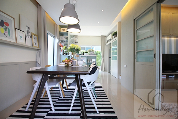 ออกมาดูส่วนห้องรับประทานอาหารกันต่อค่ะ ส่วนนี้บ้านตัวอย่างจัดไว้แบบเข้าบ้านมาแล้วเจอเลย ซึ่งขนาดพื้นที่มีความลงตัวเหมาะกับการใช้งานดีค่ะ เดี๋ยวเราพาไล่ดดูกันไปทีละส่วนนะคะ