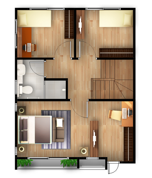 ทาวน์โฮม 2 ชั้น หน้ากว้าง 5.7 เมตร พื้นที่ใช้สอย 100 ตร.ม.