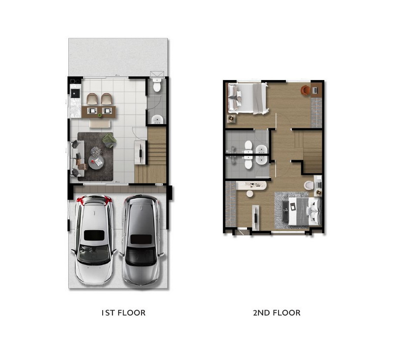 • แบบบ้าน Urbnlux I ทาวน์โฮม 2 ชั้น หน้ากว้าง 5.2 ม. ที่ดินเริ่มต้น 17 ตร.ว. พื้นที่ใช้สอย 110 ตร.ม. ขนาด 2 ห้องนอน 3 ห้องน้ำ 2 ที่จอดรถ