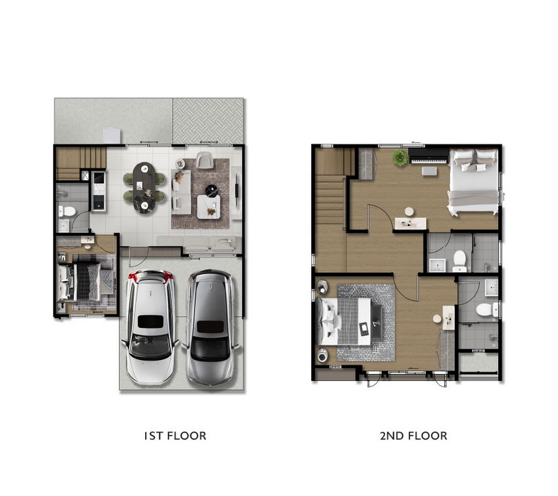 • ขนาด 2 ห้องนอน 3 ห้องน้ำ 2 ที่จอดรถ