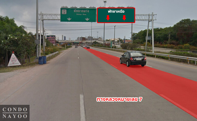 ผมเริ่มจาก ถนนหมายเลข 7 มุ่งหน้าทางตะวันตก ไปตามชลบุรี – พัทยา, จากนั้นให้ชิดขวาตามป้ายไป พัทยาเหนือ