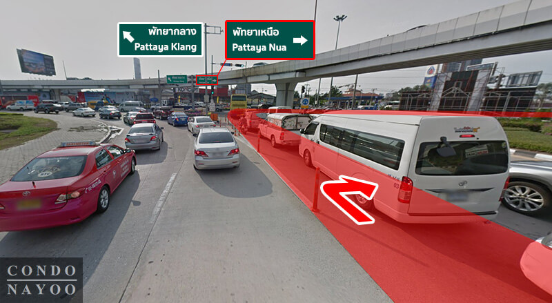 จาก ทางแยกมอเตอร์เวย์ ระยะทางอีก 380 เมตร เลี้ยวซ้ายเข้าสู่ ถนนพัทยาเหนือ