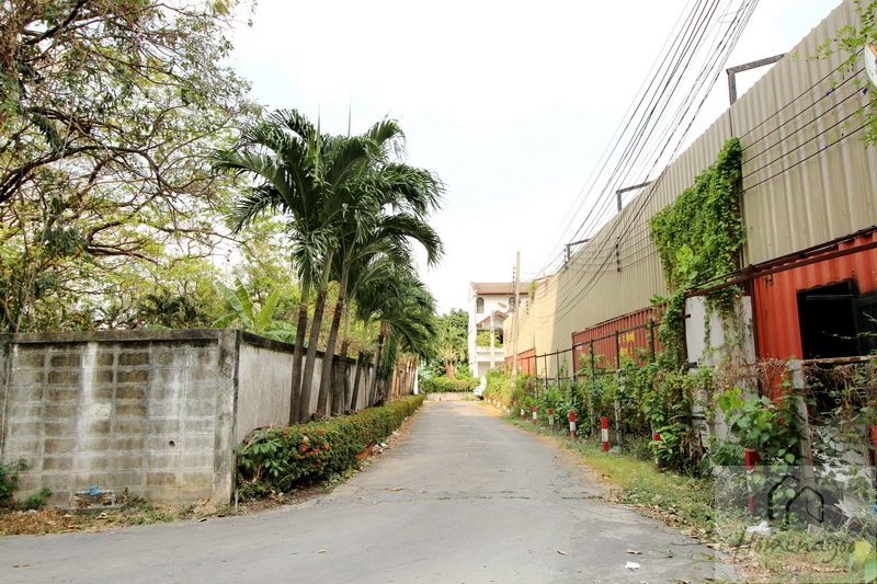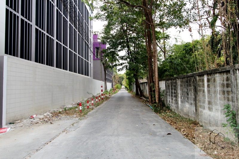จากหน้าโครงการมองเข้าไปยังตัวที่ดิน ด้านหลังฝั่งทิศใต้เป็นที่อยู่อาศัยแนบราบ ความสูง 2-4 ชั้น ไม่มีตึกสูงขึ้นค่ะ