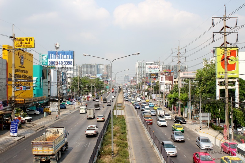 มองไปทางขวามือมีทางเท้าให้ใช้เดินได้สะดวก