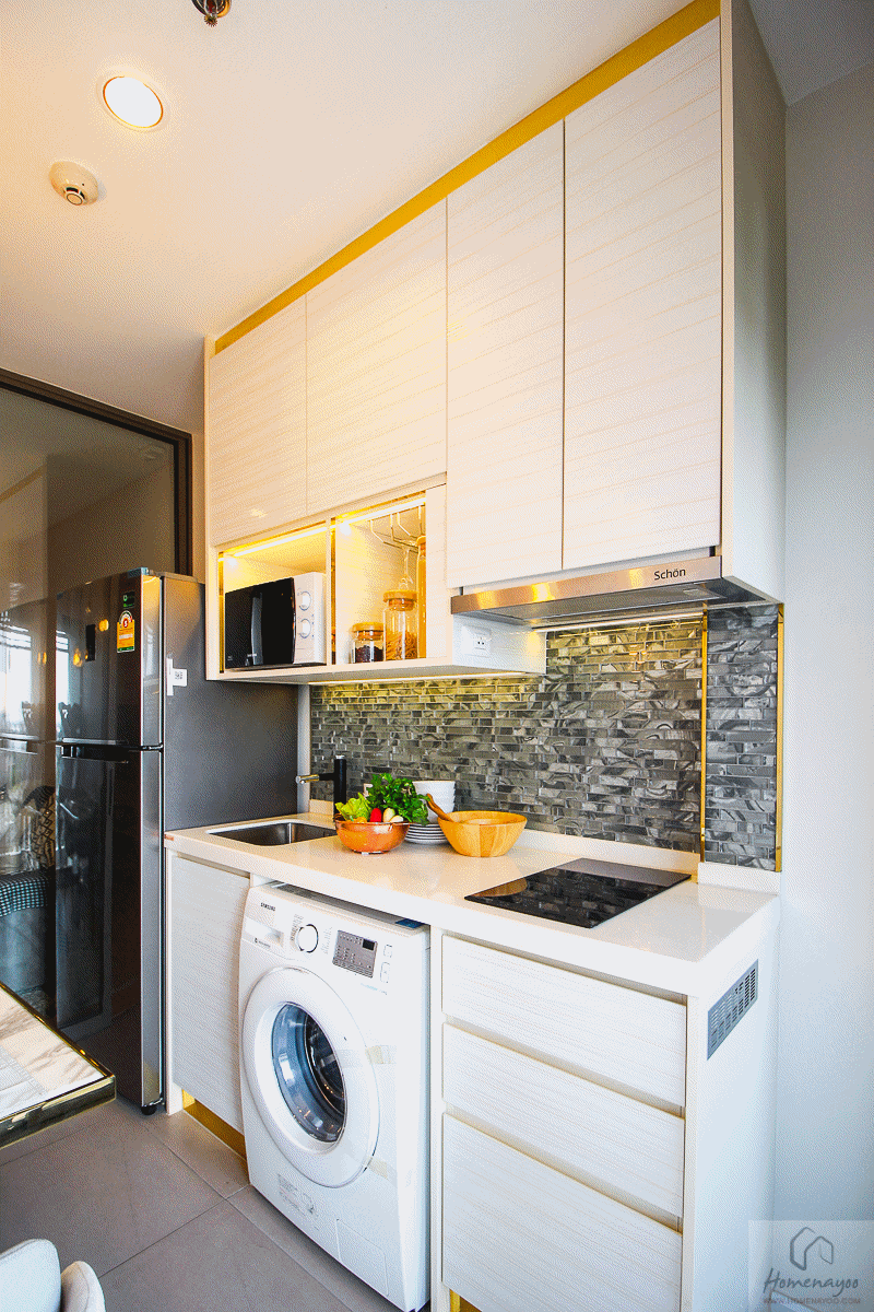 วันนี้เรามีห้องตัวอย่างมาให้ชม 2 แบบ เป็นห้อง 1 Bedroom ขนาด 31.08 ตร.ม. และ 1 Bedroom ขนาด 36.35 ตร.ม. โดยโครงการขายแบบ Fully Fitted จะได้ตู้เสื้อผ้า ชุดครัว แอร์ติดผนัง สุขภัณฑ์ในห้องน้ำ เครื่องทำน้ำอุ่น และระบบ Home Automation พร้อม CCTV