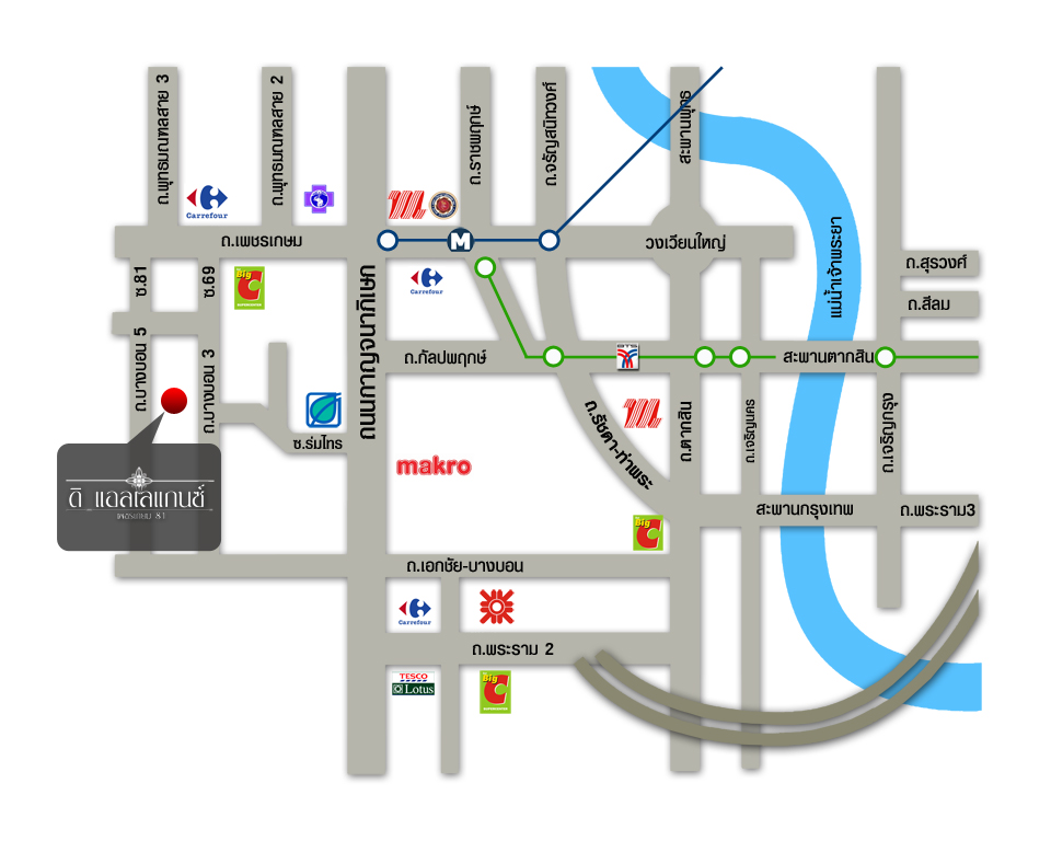 การเดินทาง เริ่มจาก ถนนกาญจนาภิเษก > ถนนเพชรเกษม > ถนนเพชรเกษม 81 (ซอยมาเจริญ) > บางบอน 5 > ดิ แอลเลแกนซ์ เพชรเกษม 81 (บางบอน 5)