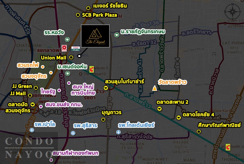 ถนนลาดพร้าว > แยกรัชดา-ลาดพร้าว > ถนนลาดพร้าว > ซอยลาดพร้าว 1 > ซอยลาดพร้าว 1 แยก 4 > The Elegant ลาดพร้าว 1