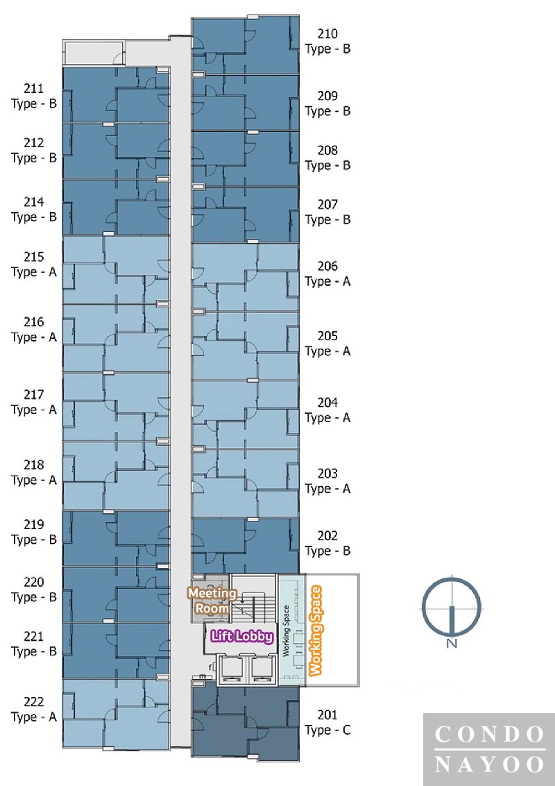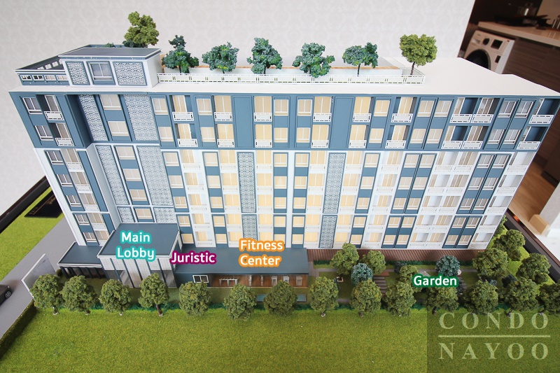 การออกแบบโครงการ และวัสดุ โครงการเป็นคอนโดมิเนียม สูง 8 ชั้น มี 1 อาคาร ทั้งหมด 147 ยูนิต บนพื้นที่ 0-3-80 ไร่ ห้องแต่ละ Type ก็ถูกออกแบบมาให้มีฟังก์ชั่นที่ลงตัว ส่วน Living Area จะแบ่งส่วนกับห้องนอนด้วยผนังทึบ คือแยกออกจากกันอย่างสิ้นเชิง เน้นห้องนอนที่มีขนาดใหญ่และได้ความเป็นส่วนตัว แต่ข้อเสียก็มีตรงที่ ส่วน Living Area จะมีแสงธรรมชาติผ่านเข้ามาได้น้อย ต้องอาศัยเปิดประตูห้องนอนเอาไว้ค่ะ