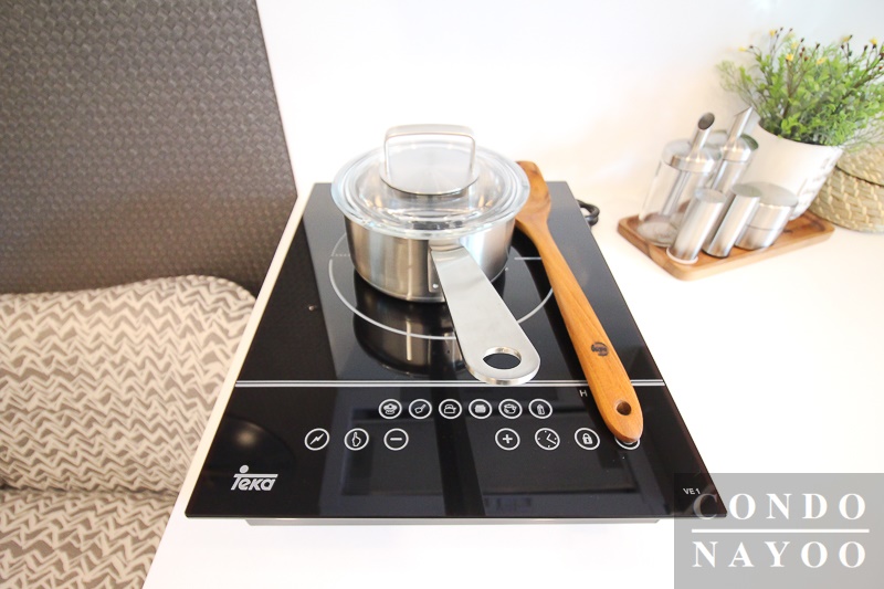 หันมาที่ฝั่งตรงข้ามจะเป็นส่วนเคาน์เตอร์ครัวที่เราได้มากับตัวห้อง เป็นเซ็ทเดียวกันกับห้องที่แล้วค่ะ