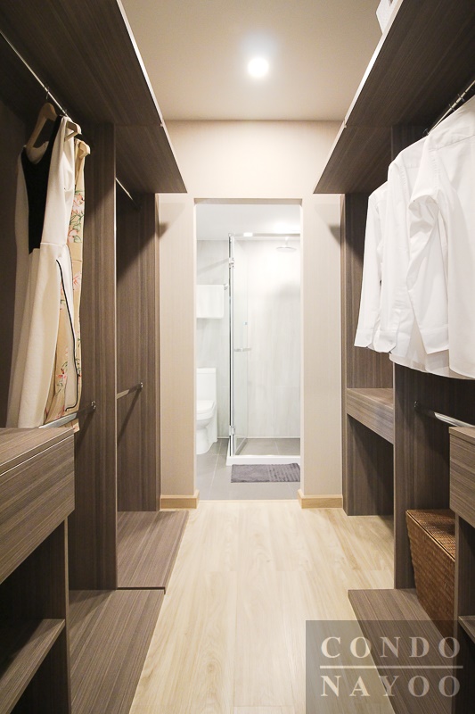 ภายใน Walk-in Closet มีขนาดใหญ่ขึ้น ทางโครงการจึงให้ตู้เสื้อผ้ามาทั้ง 2 ฝั่งเลยค่ะ