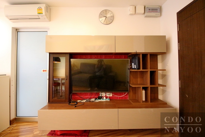 ห้องนั่งเล่น สามารถวางเครื่องใช้ได้ 3 จุด โดยห้องนี้วางเป็นโซฟา 2 ตัว และชั้นวางทีวี 1 ชุด