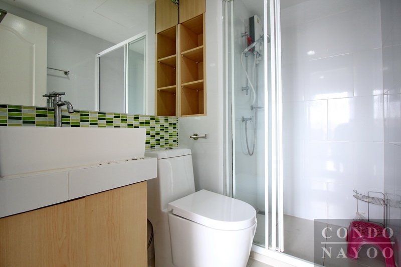 รูปแบบห้องน้ำเหมือนกับห้องแบบ 1 ห้องนอน แยกโซนแห้งเปียกและใช้สุขภัณฑ์ของ Marvel