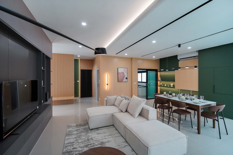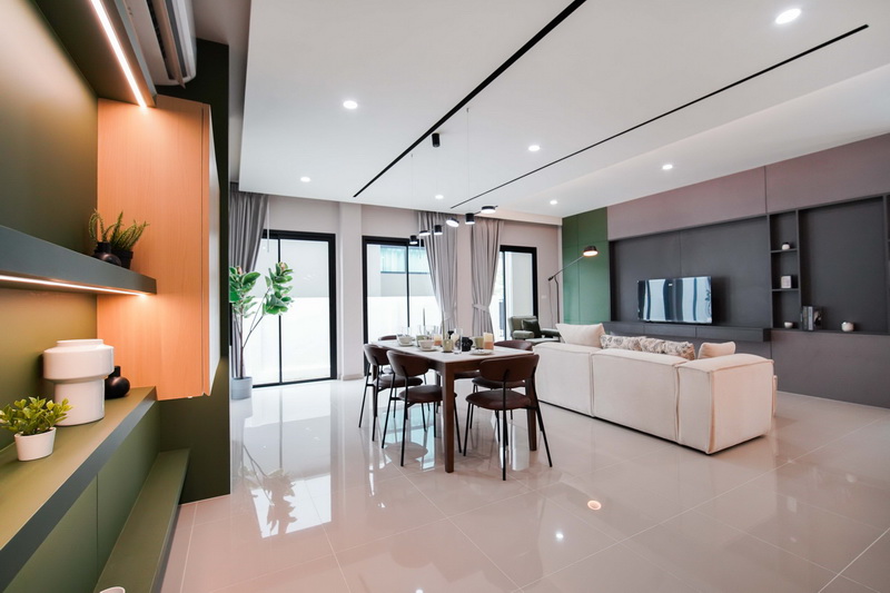 • ฟังก์ชันบ้าน 3 ห้องนอน, 4 ห้องน้ำ, 1 ห้องรับแขก, 1 ห้องครัว, 1 ที่รับประทานอาหาร และ 2 ที่จอดรถ