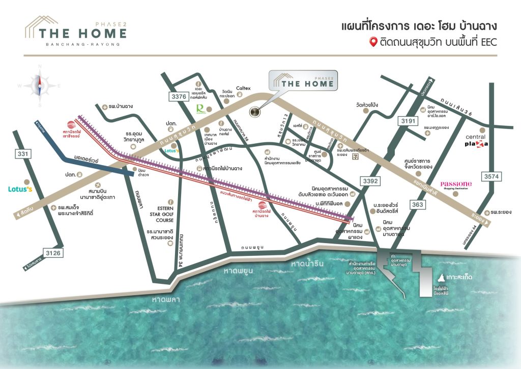 The Home บ้านฉาง เฟส 2 บ้านโครงการใหม่ จาก เบญญาภา พร็อพเพอร์ตี้ ที่ตั้งโครงการอยู่ ต.ห้วยโป่ง อ.เมืองระยอง จ.ระยอง บนทำเลศักยภาพติดถนนสุขุมวิท เดินทางสะดวก ใกล้แหล่งงานนิคมฯมาบตาพุด, นิคมฯเอเซีย และยังใกล้ท่าอากาศยานนานาชาติอู่ตะเภาเพียงไม่กี่นาที
