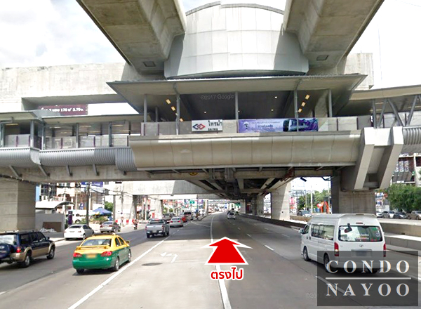 ใช้ทางหลัก ตรงมาเรื่อย ๆ ผ่านสถานีไทรม้า