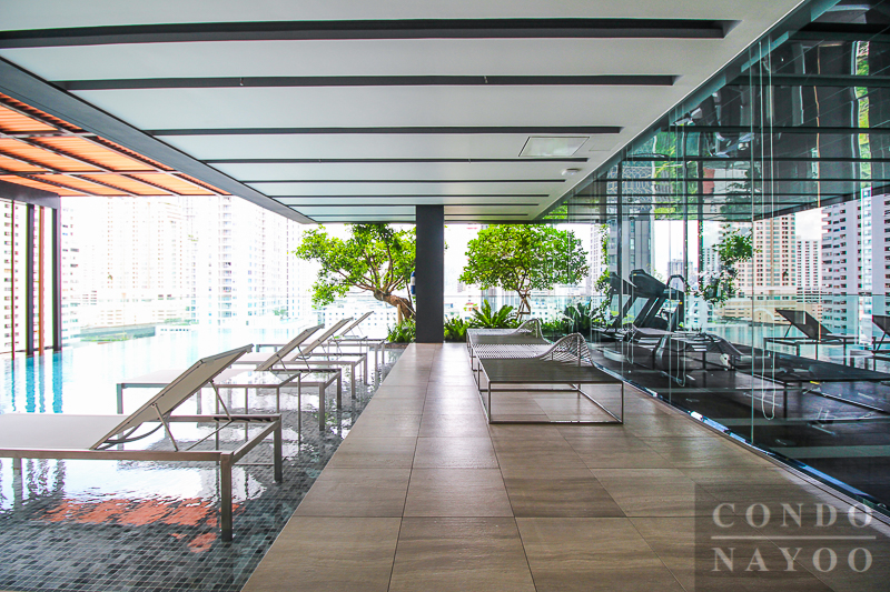 ที่ชั้น 11 จะมีสระว่ายน้ำระบบเกลือขนาด 22 x 5 ม. ลึก 1.2 ม. แบ่งสระเด็กขนาด 3.5 x 4.5 ม. ลึก 50 ซม. โดยความพิเศษที่พื้นสระจะซ่อนไฟ จำลองหมู่ดาวในทางช้างเผือก ให้คุณรู้สึกเหมือนแหวกว่ายอยู่ใน Universe แบบเดียวกับที่โครงการ The Monument สนามเป้า นอกจากนี้ยังมี จอโปรเจคเตอร์ไว้เปิดหนังชมได้ พร้อมระบบเสียงชั้นเยี่ยมจากลำโพง BOSE เหมือนมีโรงหนังส่วนตัว ที่พื้นรอบสระว่ายน้ำใช้หินอ่อน Grey Travertine (Anti-slip finished) ที่ผนังเป็นหิน Fusion Red Marble นำเข้าจาก Brazil มีห้องฟิตเนสให้เครื่องออกกำลังกายแบรนด์ Technogym แบรนด์ดังจากอิตาลี ไปชั้นนี้สามารถปรับเปลี่ยนสีได้ตามต้องการ มีห้องน้ำแยกชายหญิงพร้อมห้อง Steam และตู้ Smart Locker เพียงใช้ Key Card แตะ