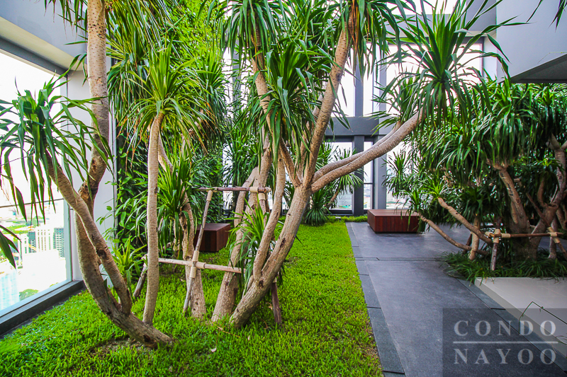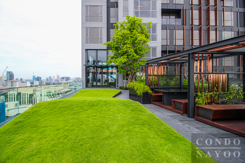 ที่ชั้น 38 จะเป็น Roof top garden จะเป็นสวนหย่อมทั้งชั้น มีทั้งไม้ใหญ่ไม้พุ่ม พร้อมพื้นที่นั่งพักผ่อนลูกบ้านสามารถขึ้นมารับลมชมวิวกันได้ครับ