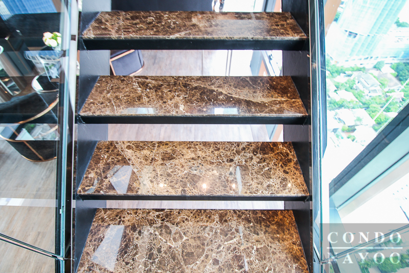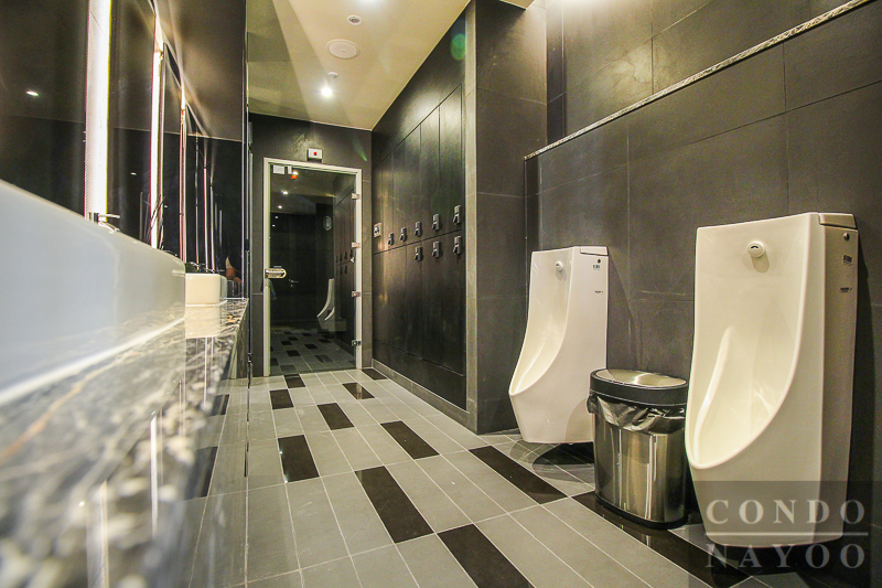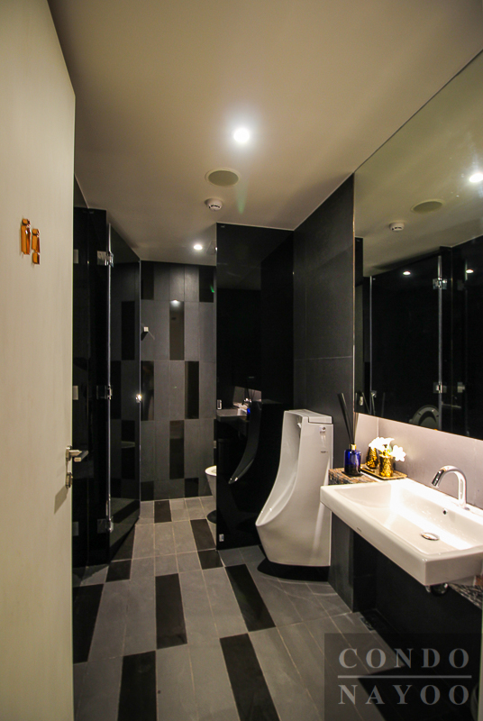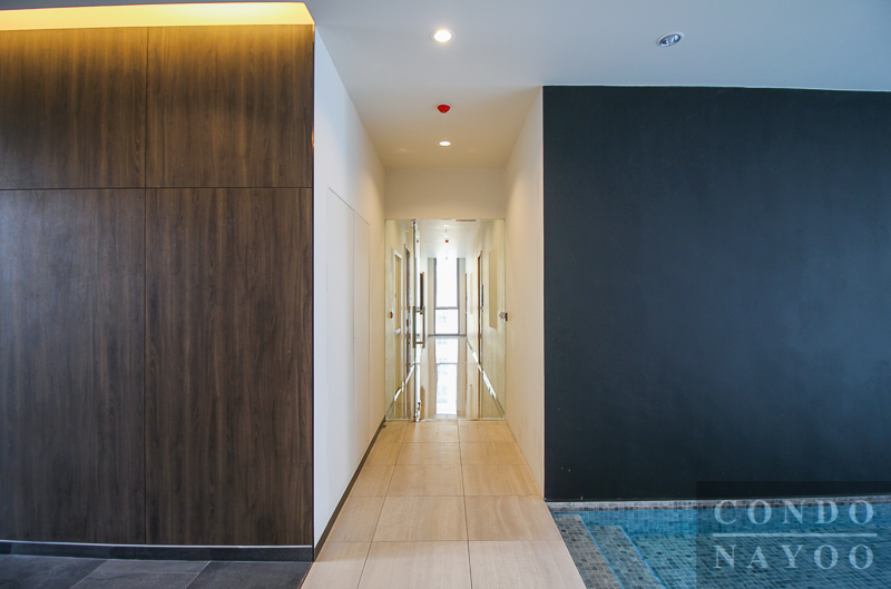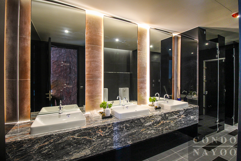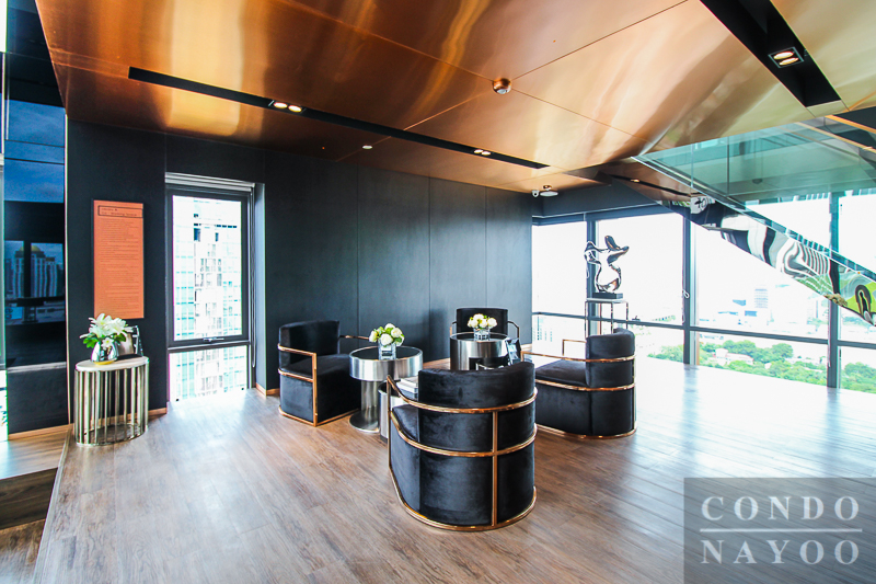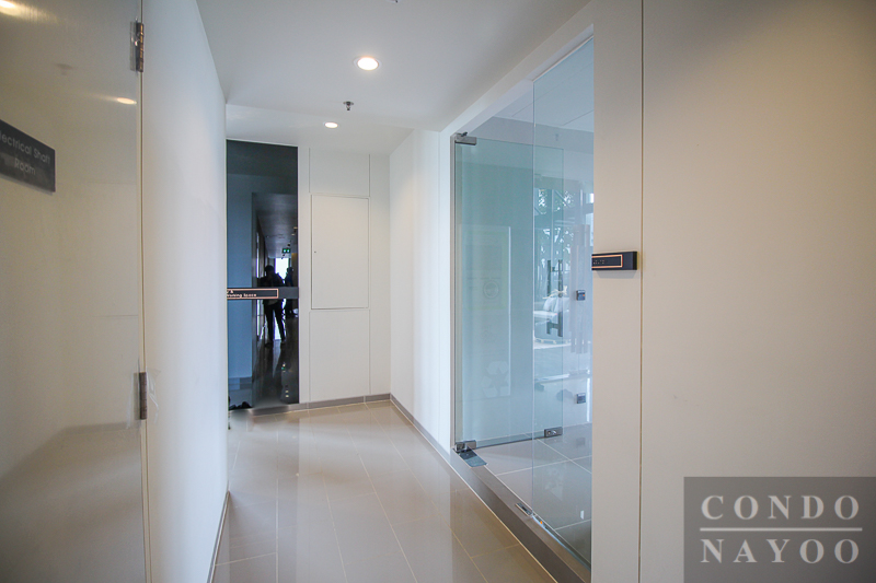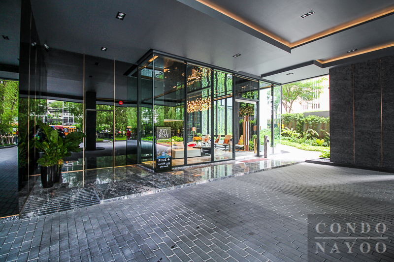 สิ่งอำนวยความสะดวก – Facility โครงการนี้ให้มาค่อนข้างดี และดีกว่า The Line ทุกตัวของแสนสิริเอง แต่ก็ต้องแลกกับค่าส่วนกลางที่สูงตามไปด้วย อยู่ที่ 90 บาท/ตารางเมตร ที่นี่ออกแบบมาได้สวยและน่าใช้งานไม่เสียชื่อแสนสิริ หลักๆของโครงการอยู่ที่ชั้น 1, 11, 31, 38 ที่ชั้น 1 ด้านหน้าโครงการมีสวนยาวเชื่อมผ่านเข้ามาถึงด้านหลังโครงการตกแต่งต้นไม้มาได้ร่มรื่น เข้ามาในตัวอาคารจะเป็นส่วนของ Lobby โดยที่พื้นให้หินอ่อน Jaguar Pink ที่ผนังใช้ Statuario Marble แบบต่อลาย วางเก้าอี้รุ่น MT3 Rocking Chair ออกแบบโดยดีไซน์เนอร์ชื่อดังชาวอังกฤษ Ron Arad และโชว์ Chandelier แบรนด์ของ OCHRE ซึ่งเป็นงานทำมือ ตรงส่วนของ Mail Box สามารถใช้ The Line Rabbit Card แตะเพื่อเปิดรับของได้เลย มีส่วนของตู้ Smart Locker เป็นเทคโนโลยีใหม่ของแสนสิริที่จะช่วยให้การรับ-ส่งพัสดุของลูกบ้านง่ายดายยิ่งขึ้น พื้นและผนังตรงส่วนโถงลิฟท์ใช้หินอ่อน White Venus