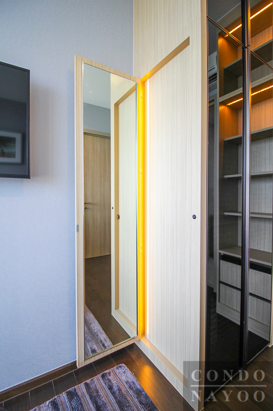 ตู้เสื้อผ้าเป็นบานเปิด 2 บาน และแบ่งช่องสำหรับวางของต่างๆ มีไฟซ่อนให้ด้วย