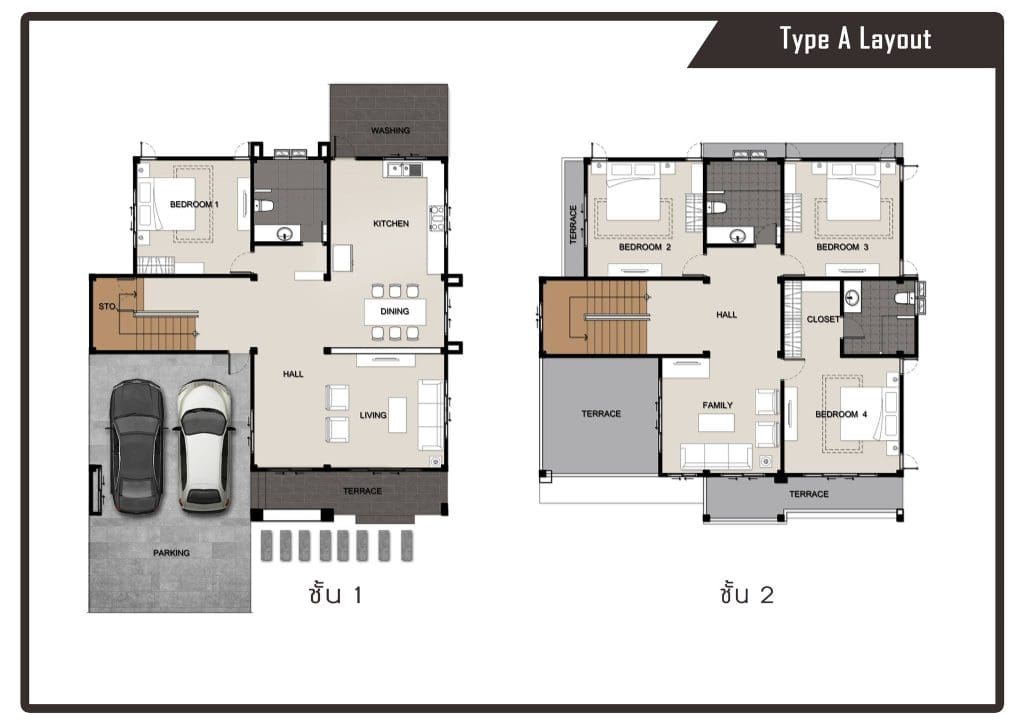 แปลนบ้านชั้น 1 | แปลนบ้านชั้น 2
