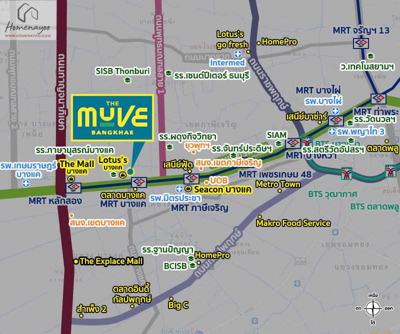 The Muve บางแค คอนโดแนวคิดใหม่ราคาเข้าถึงง่าย โครงการใหม่จาก แสนสิริ ตั้งอยู่บนทำเลศักยภาพย่านบางแค โครงการตั้งอยู่ในซอยประสาน ห่างจากถนนใหญ่เพชรเกษม ฝั่งขาเข้า เพียง 170 เมตร ใกล้รถไฟฟ้า MRT สถานีบางแค เพียง 400 เมตร (วัดจากหน้าที่ดินโครงการ) เดินทางได้สะดวกสบาย แบบไร้รอยต่อ มุ่งตรงสู่ใจกลางเมือง CBD สีลม-สาทร ได้เพียง 15 นาที*