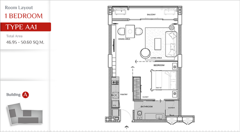TYPE AA1 | 1 Bedroom : 46.95-50.60 ตร.ม.
