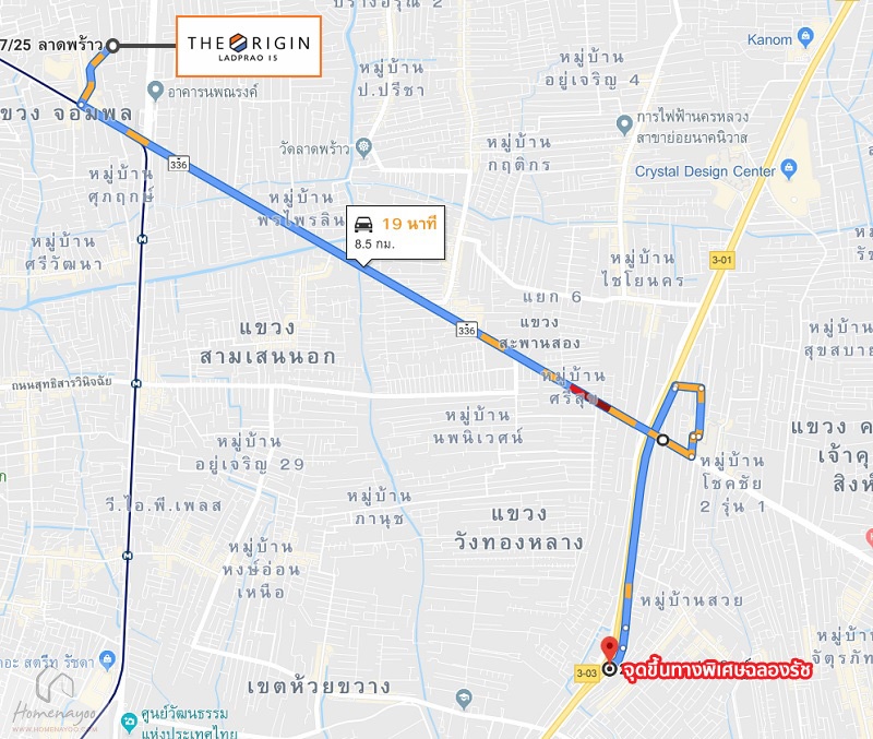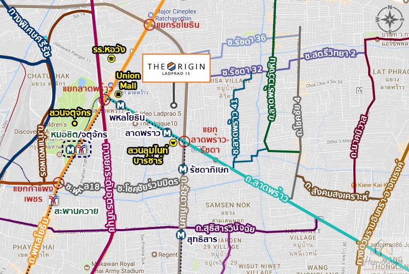 ถนนประดิษฐ์มนูธรรม (เลียบทางด่วนรามอินทรา) > ถนนลาดพร้าว > แยกรัชดา – ลาดพร้าว > ถนนลาดพร้าว > ซอยลาดพร้าว 15 > The Origin ลาดพร้าว 15