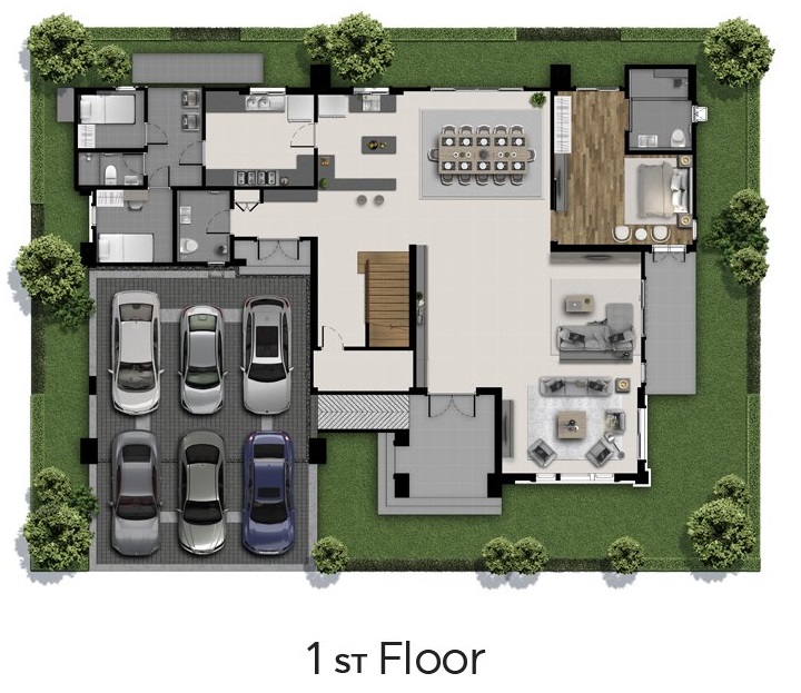 | จำนวนห้อง | 4-5 ห้องนอน, 5-6 ห้องน้ำ, ห้องรับแขก, 1 ห้องแม่บ้าน + ห้องน้ำ |