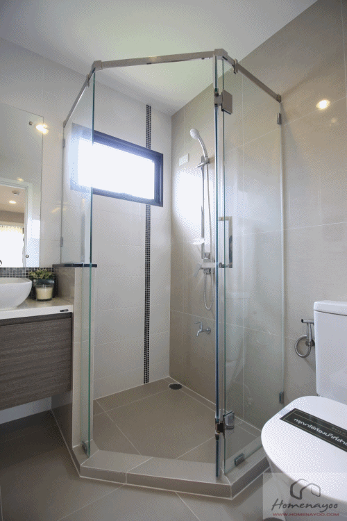 บริเวณพื้นที่อาบน้ำได้ฉากกั้นกระจกกันน้ำกระเด็นออกมาส่วนแห้งได้ดี