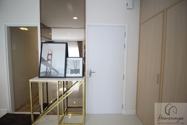 อีกฝั่งของห้องจะเป็นมุมแต่ตัวค่ะ ห้องจริงที่ได้จะเป็นพื้นที่โล่งไปได้ ไม่ได้มีประตูกั้นแบบนี้ แต่สามารถเอาไอเดียจากบ้านตัวอย่างไปทำได้นะคะ