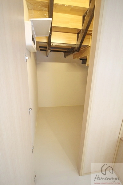ใต้บันไดจะเป็นห้องเก็บของ โดยประตูจะอยู่ติดกับบันไดเลยค่ะ