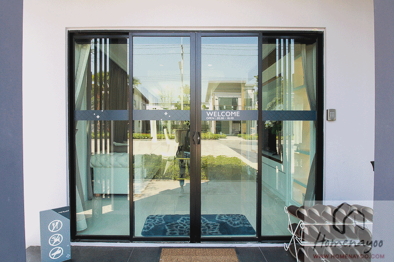 ประตูที่เชื่อมจากห้องเอนกประสงค์ ออกไปยังสวนจะได้เป็นประตูบานกระจกแบบนี้