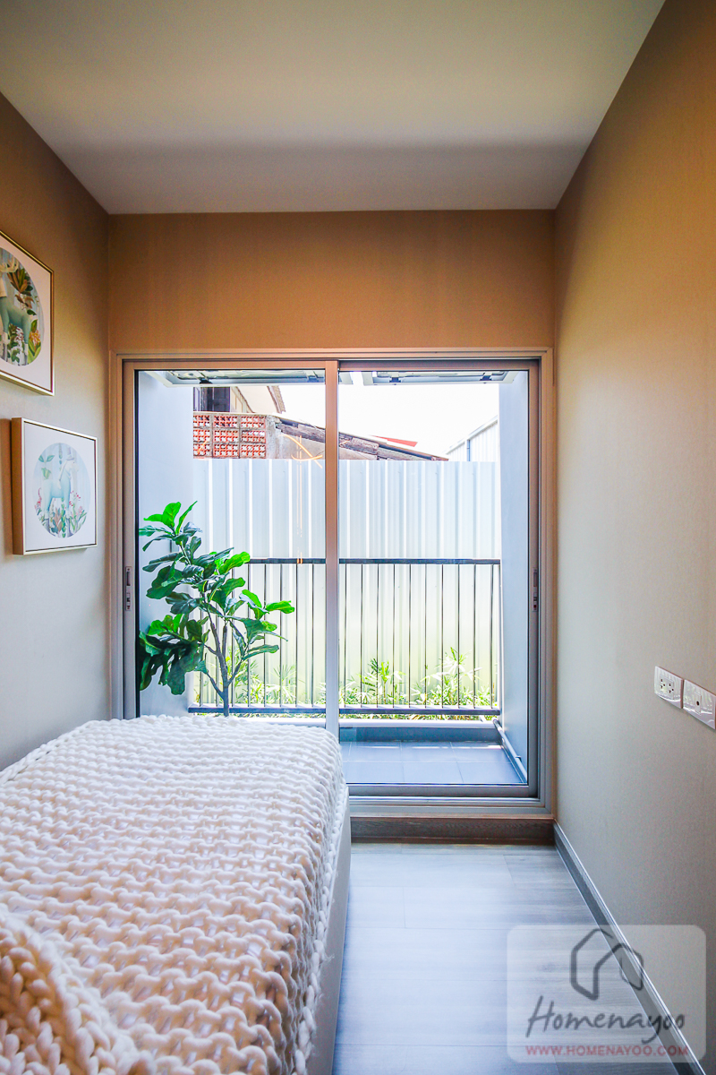 ห้องตัวอย่างจัดเป็นห้องนอนเสริมค่ะ วางเตียงขนาด 3.5 ฟุต