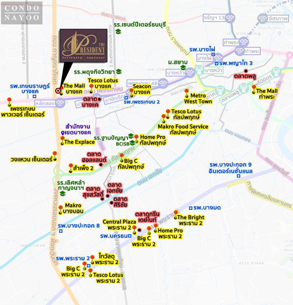 The President เพชรเกษม-บางแค จาก ชัยพัฒนาที่ดิน ตั้งอยู่ติดถนนกาญจนาภิเษก แขวงบางแค เขตภาษีเจริญ กทม.