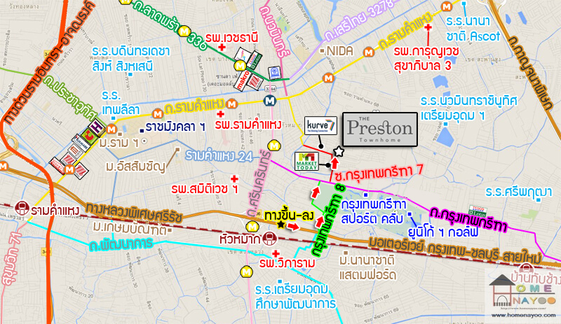 | สถานที่สำคัญใกล้เคียง | เดอะมอลล์ บางกะปิ เดอะไนน์ พระราม 9 โรงพยาบาลสมิติเวช ศรีนครินทร์ มหาวิทยาลัยอัสสัมชัญ (ABAC) มหาวิทยาลัยรามคำแหง สนามราชมังคลากีฬาสถาน โรงพยาบาลวิภาราม โรงเรียนเตรียมอุดมศึกษาพัฒนาการ ท่าอากาศยานสุวรรณภูมิ ซีคอนสแควร์ พาราไดซ์ พาร์ค |