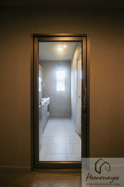 ประตูห้องครัวนี้จะเป็นประตูบานเลื่อน เฟรมอลูมิเนียม ทั้งหมดเป็นบานกระจกใส